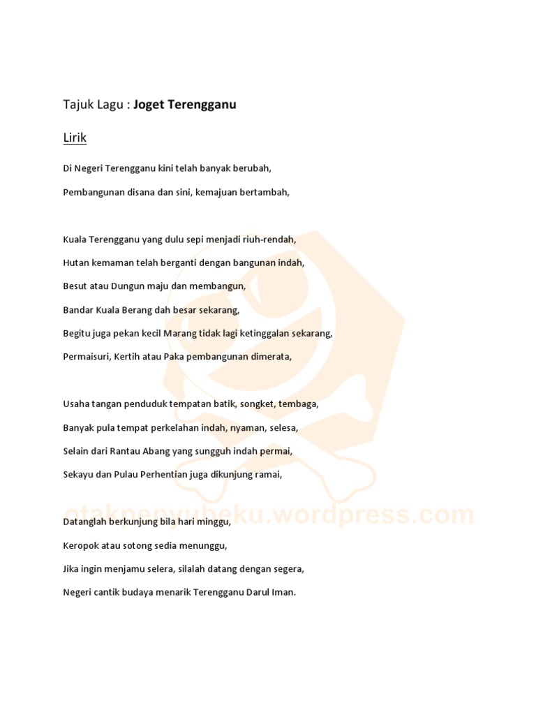 Lirik Lagu Negeri Terengganu Lagu Negeri Lirik Sentral